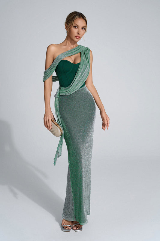 26% İndirimLeanna Yeşil Çiçek İşlemeli Uzun Elbise